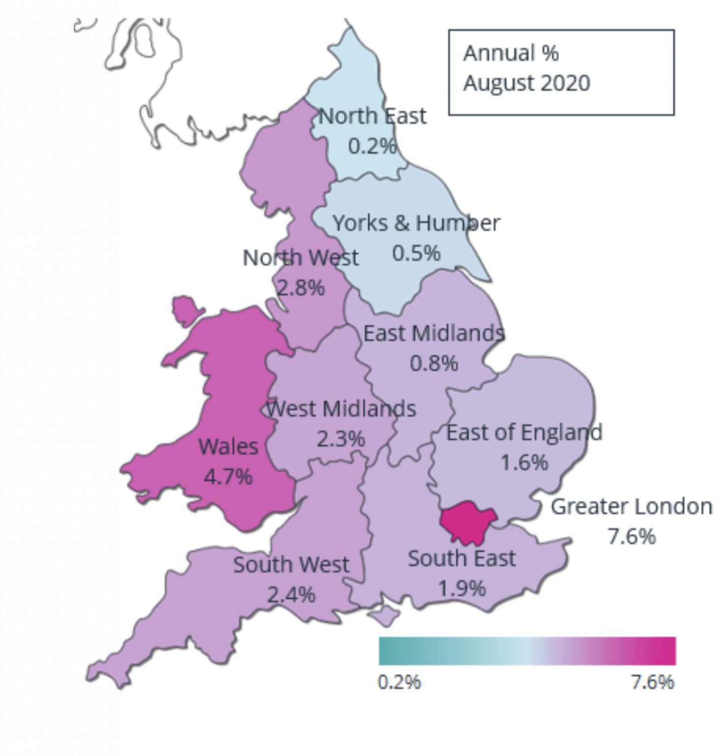 西北地区和约克郡亨伯地区目前的年增长率最低,分别为0.2%和0.5%。