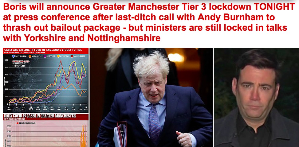 大曼彻斯特疫情不断升级之下,鲍里斯一直想让大曼彻斯特地区进入三级封锁。