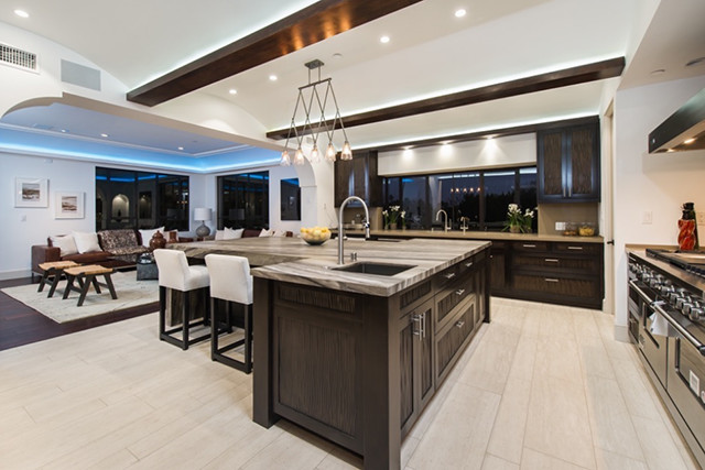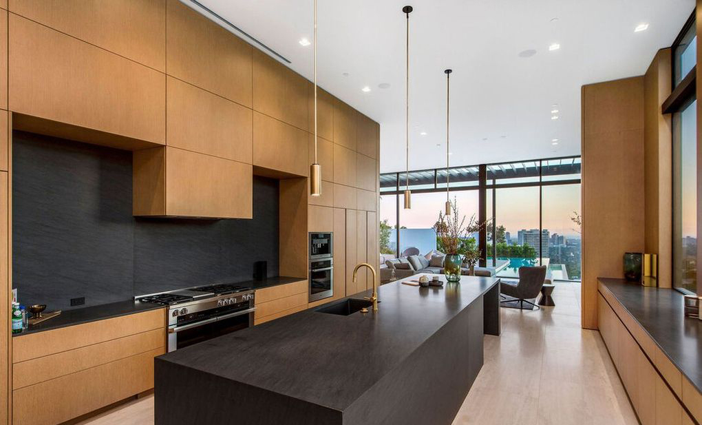豪宅内还有一间全尺寸开放式厨房,以及豪宅标配的厨房中岛。