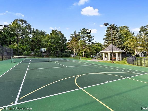 院子里还有专门的网球场和篮球场。