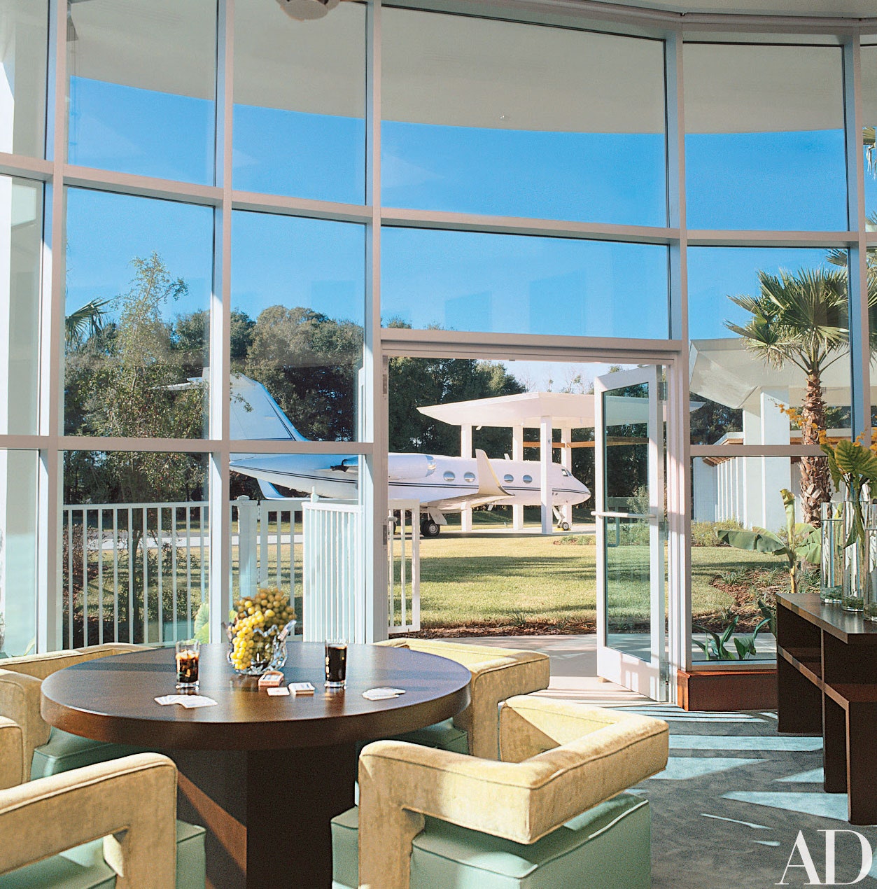 可以欣赏到私人飞机的休息室