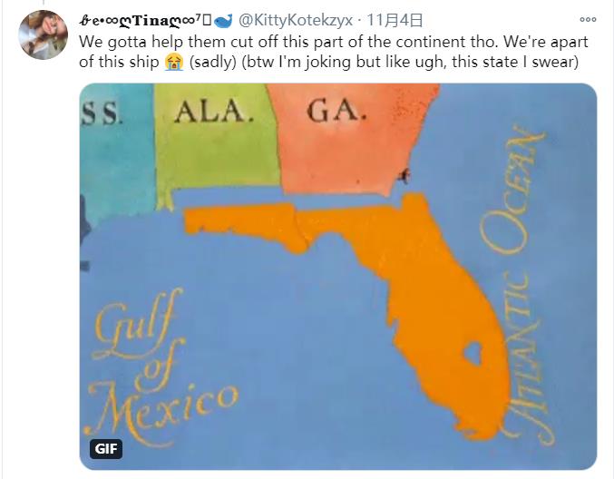 还有人做了兔八哥直接从美国地图上锯掉佛罗迪达州的动图,来表达自己的不满和失望…
