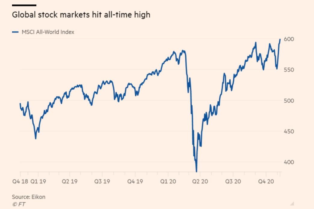 摩根士丹利资本国际(MSCI)全球股票指数(All-World index)上涨1.3%,创下历史新高。