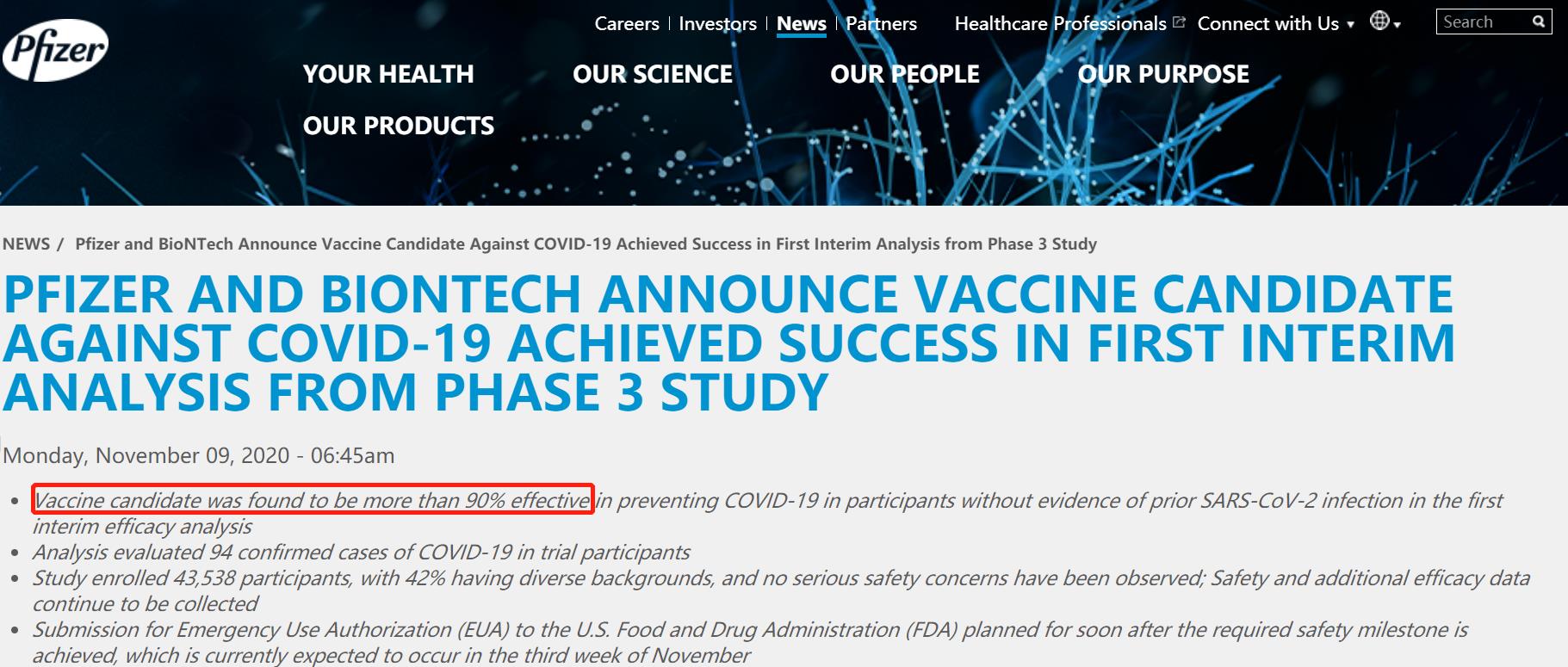 11月9日,辉瑞和BioNTech宣布了一则重磅消息: