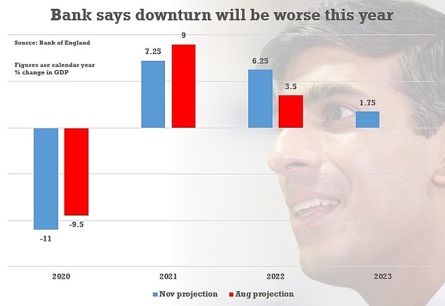 而英国央行上周发布的预测,随着二次封国措施再次对经济活动造成冲击,今年最后一个季度英国经济将下降2%,2020年全年经济将下降11%。