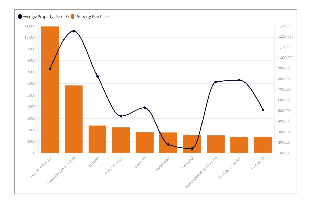 此外,像是陶尔哈姆莱茨(Tower Hamlets),兰贝斯(Lambeth)这样的新兴重建区,或者金融城这样的大型企业云集区,海外公司买家的数量也非常多。