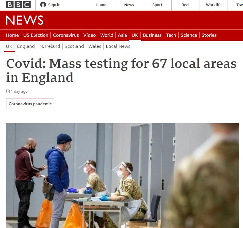 另外,据英国卫生大臣马特·汉考克表示,政府将把利物浦的试点工作推广开来,在英国67个地区启动大规模全民新冠快速检测。
