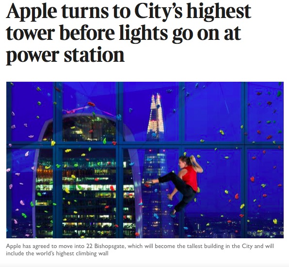 就在去年年底,苹果公司还宣布,在伦敦金融城的 22 Bishopsgate大厦设立新的总部。