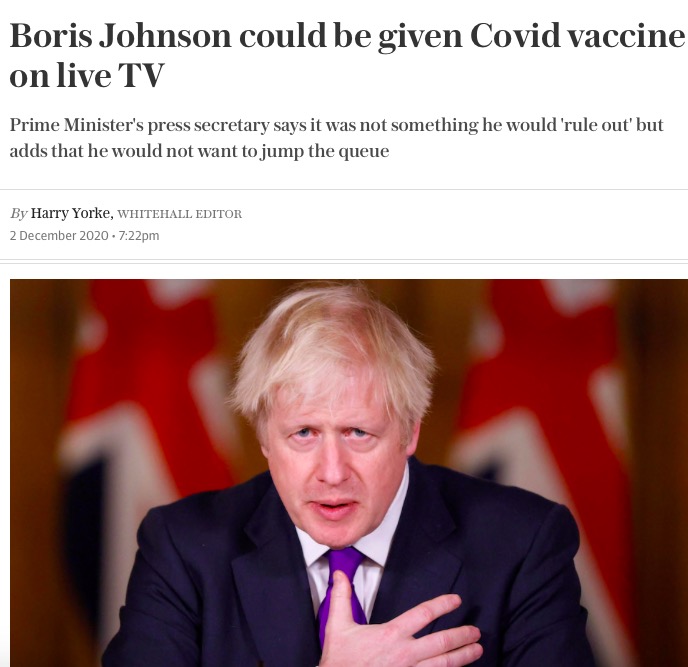 据每日电讯报报道,鲍里斯可能会直播接种疫苗,以此鼓励民众接种疫苗。