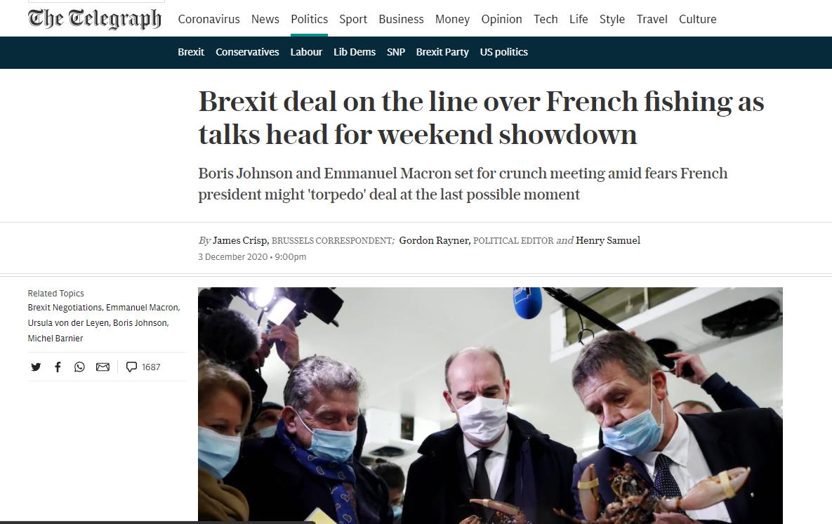 一位英国政府消息人士表示,法国总统在渔业问题上的强硬立场可能会“破坏”英国脱欧贸易协议谈判。