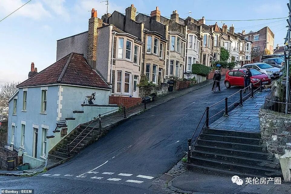 原来,是因为这套房子的旁边,有著名街头涂鸦艺术家班克斯(Banksy)的画作。