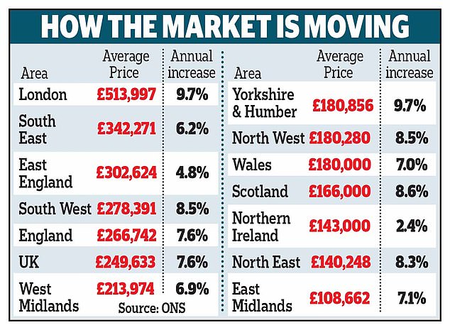不仅英国平均房价涨到25万磅的高峰,几乎所有的区域都在高歌猛进。