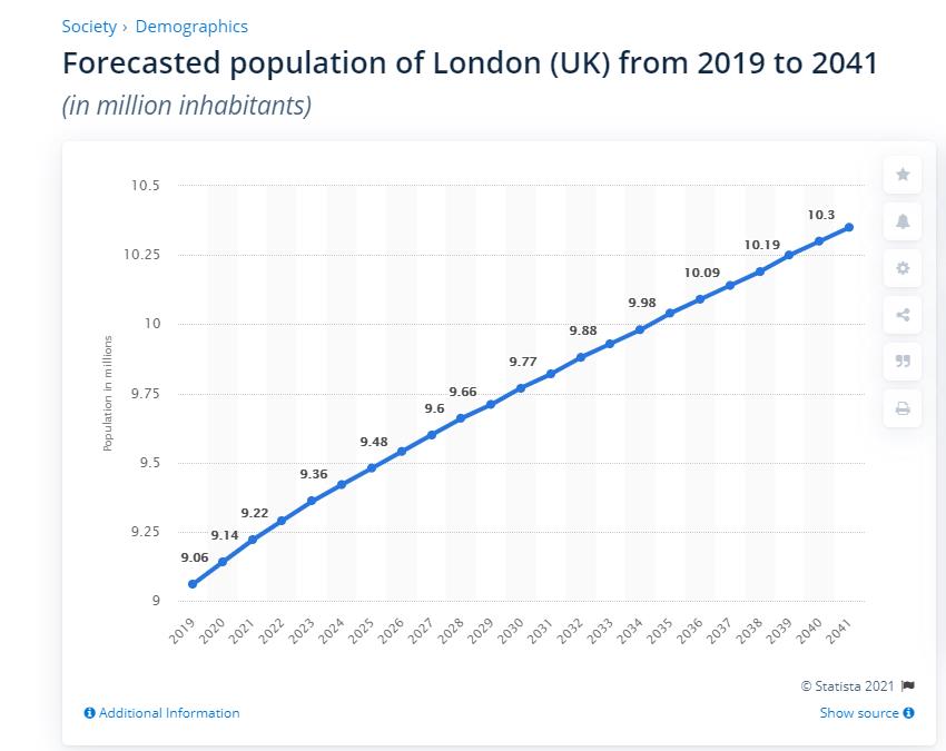 从需求方面来看,英国的人口一直保持增长状态,尤其是像伦敦这类核心城市,人口流入一直非常强劲,据预测,2041年,伦敦的人口将达到1,030万,这些都可能会转化为房产需求。