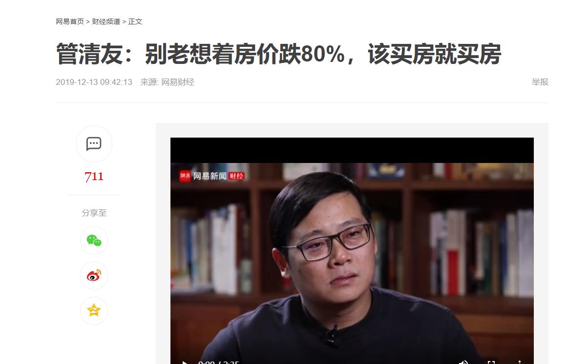 著名经济学家管清友也曾说过,别老想着房价跌80%,该买房时就买房。