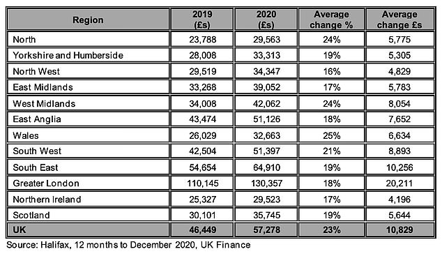 其中,威尔士的涨幅最高,达到了25%,平均首付款金额也达到了32,663英镑。
