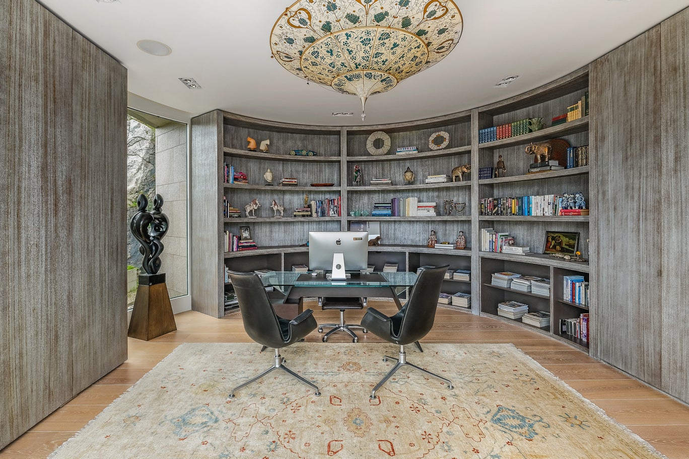 书房,高端大气。曲线书架,别具一格