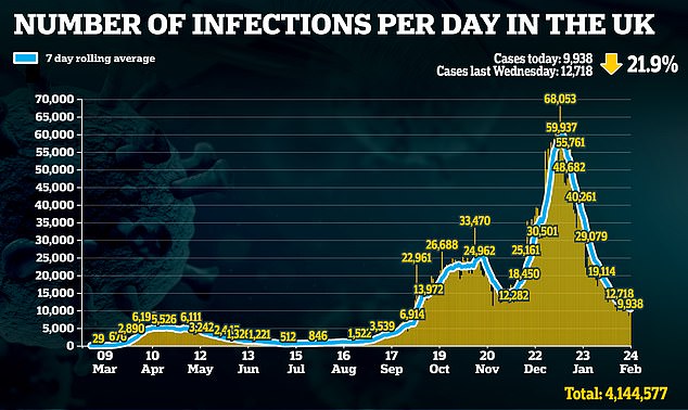 昨天,英国新增确诊9,938人,较上周同一时间下降21.9%。