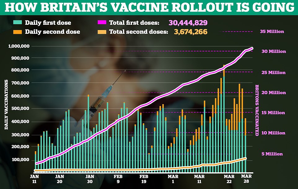 截止昨日,英国有超过3,044万人接种了第一剂疫苗,继续保持着全球领先水平。