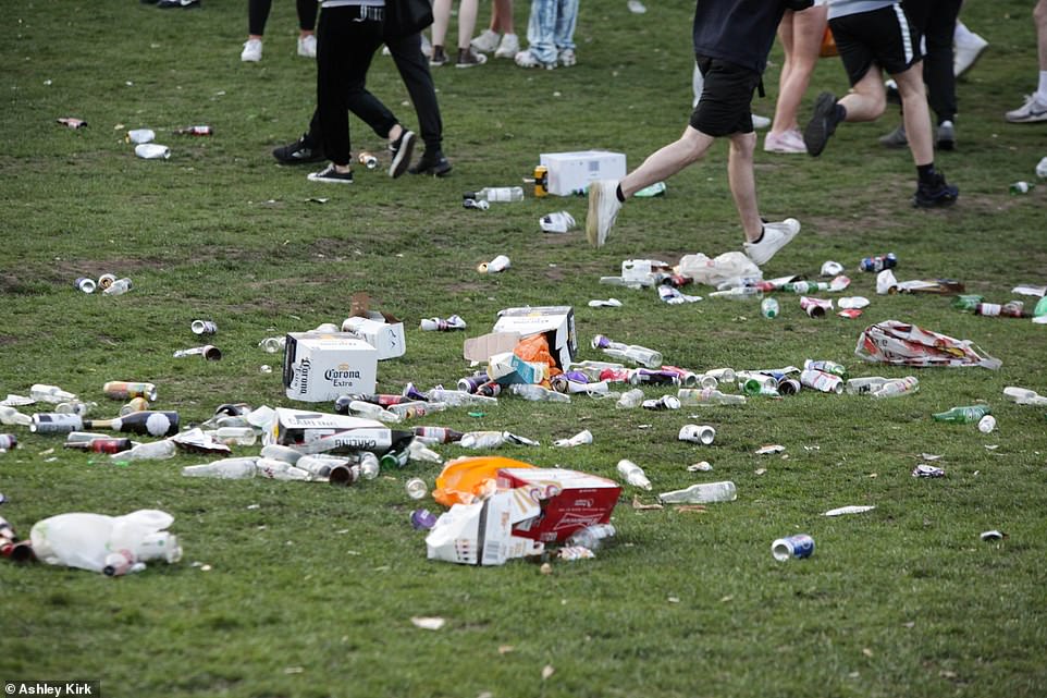 在人们肆意玩闹后,也留下了一地的垃圾……