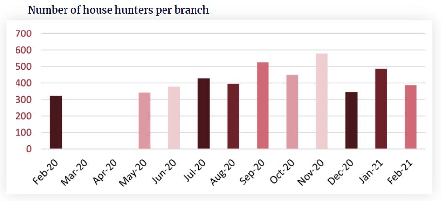 另外,该公司最新的市场分析还显示,2月份的销售活动依旧火爆,Propertymark的每家分支机构达成的平均销售数量增至11笔,高于今年1月的10笔、2020年2月同期的9笔和2019年2月的7笔。
