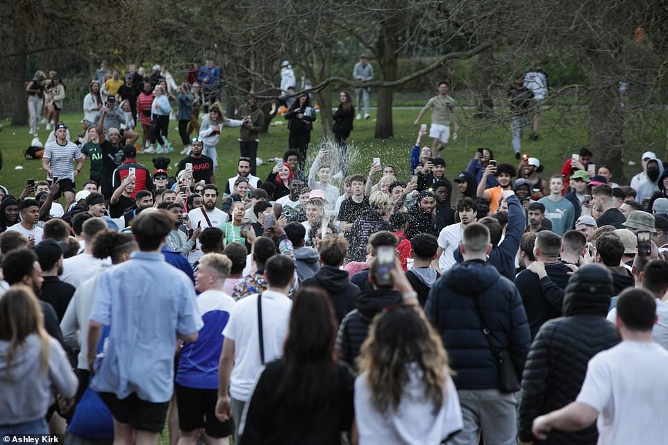 英国的各大公园更是成了最热门的聚会地,到处都是人山人海……
