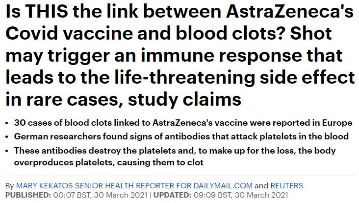 来自德国和挪威的两个研究小组发现,在非常罕见的情况下,这种疫苗会导致人体攻击自身的血小板,从而引发致命的大脑血栓。