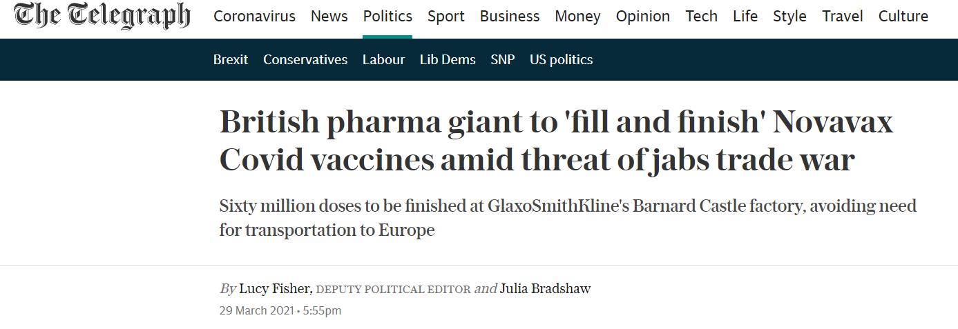 而这一举措也意味着,英国不需要通过德国的工厂来灌装Novavax疫苗,从而减少了对欧盟的依赖。