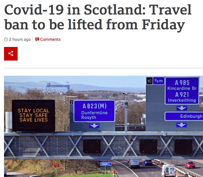 - 苏格兰解封:对苏格兰各地旅行的限制将于周五解除,届时人们还可以在户外聚会。