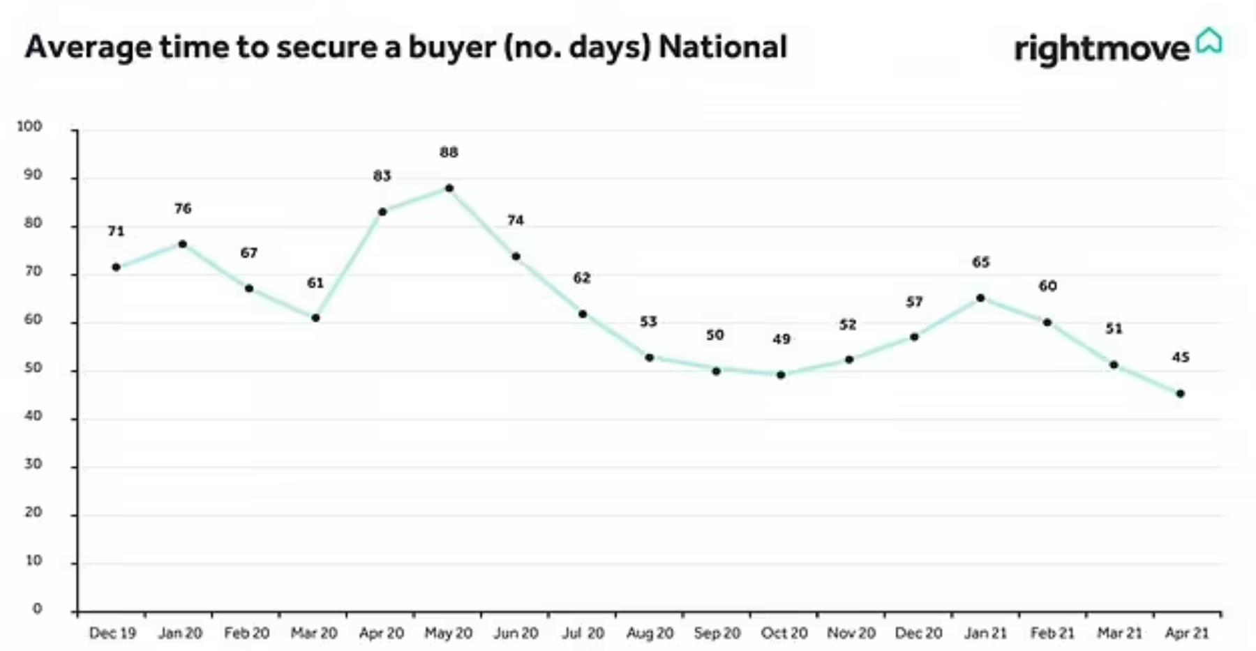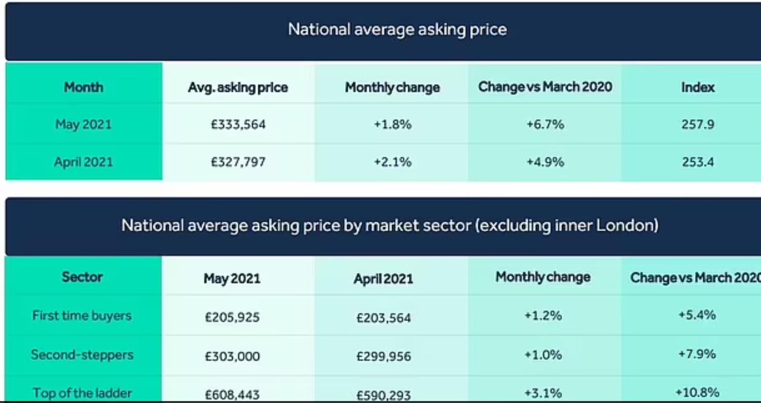 与2020年3月相比,房屋平均要价同比上涨了6.7%,也远高于4月份的涨幅。