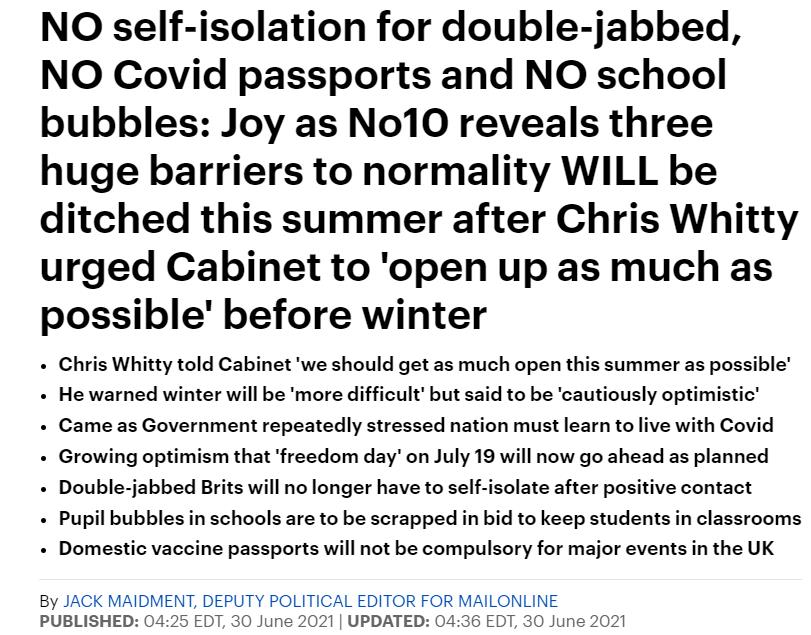 值得注意的是,对于7月19日解封,英国首席医疗官克里斯·惠蒂(ChrisWhitty )也十分支持,并表示“应该在今年夏天尽可能多地开放”。