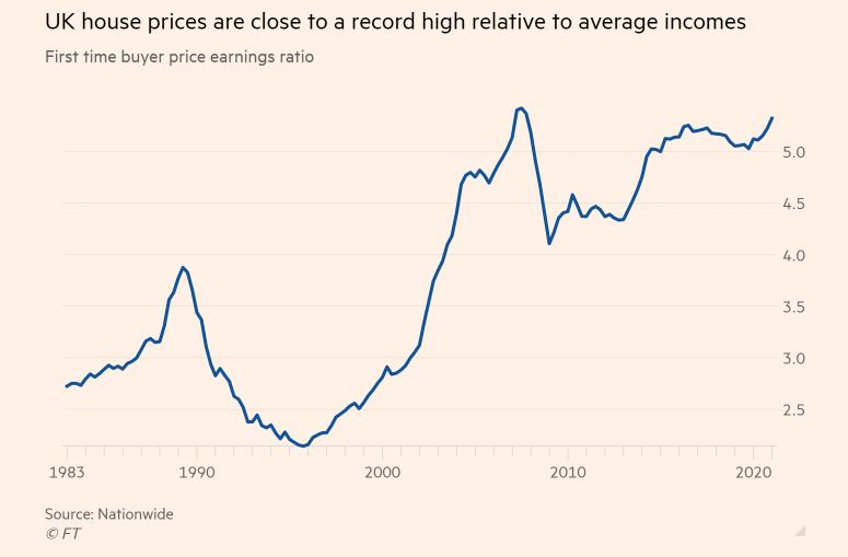 Nationwide还表示,目前,英国的收入与房价之比已经接近历史新高。