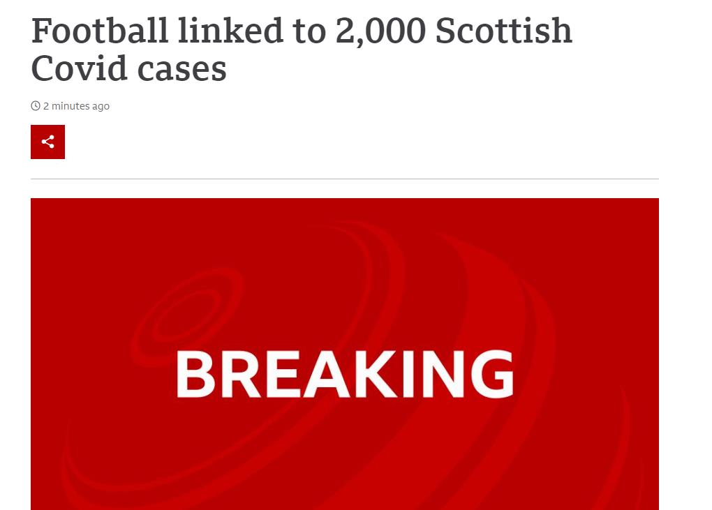 在病例激增的同时,据媒体报道,苏格兰有近2,000例病例与今年观看欧洲杯足球赛的人有关。