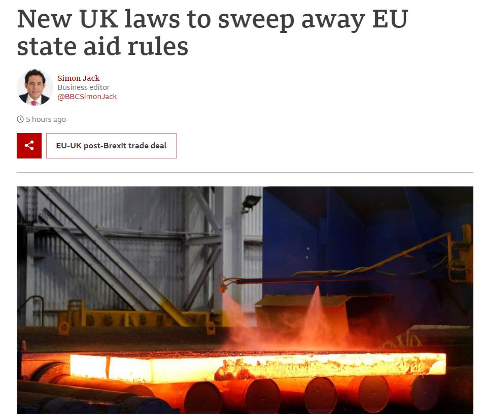 众所周知,在去年英欧脱欧贸易谈判期间,“公平竞争环境和国家补贴”是谈判双方的主要分歧点之一。