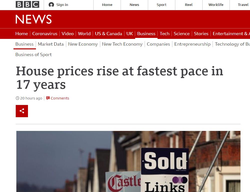 6月份英国房价达到近17年以来的最高涨幅,央行表示,目前英国的房产需求十分强劲…