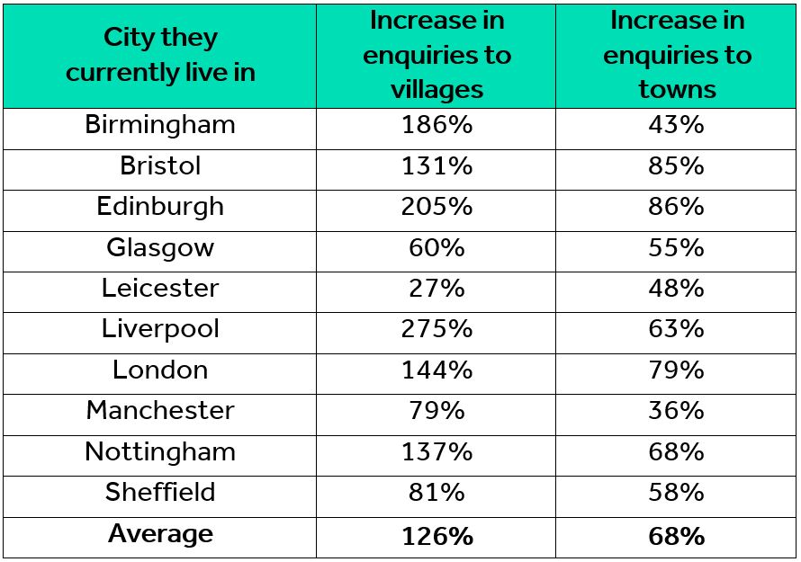 其实,这一现象也有数据的支撑,根据Rightmove的数据,去年6月和7月,在英国10所主要城市中,买家对农村地区房产的咨询量较去年同期平均增加了126%。