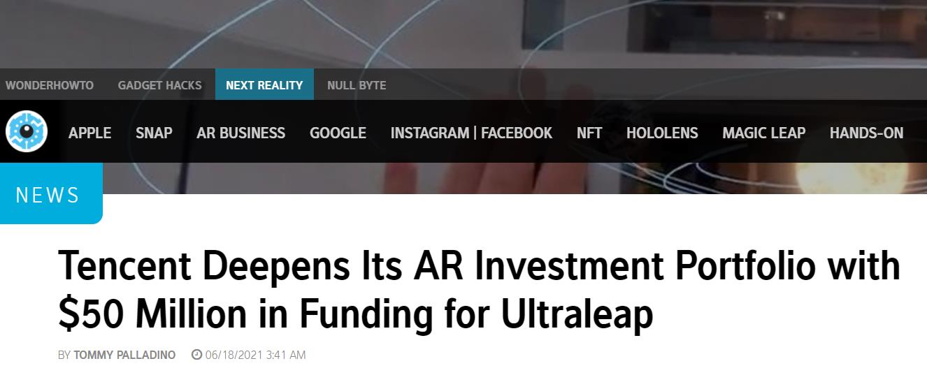 今年6月18日,腾讯宣布通过其子公司入股了英国主打手势识别技术的VR科技公司Ultraleap,该公司的D轮融资第一阶段投资额高达3,500万英镑。