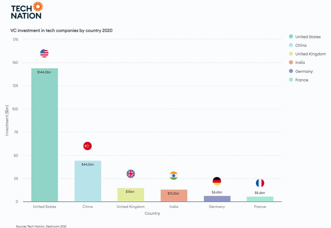 数据显示,即便是受到了脱欧和疫情的双重影响,但2020年英国对科技领域的投资仍位居世界第三,创下150亿美元的历史新高,投资额仅次于美国和中国。