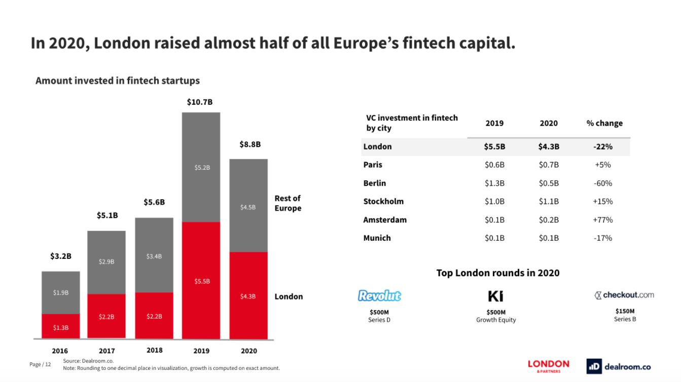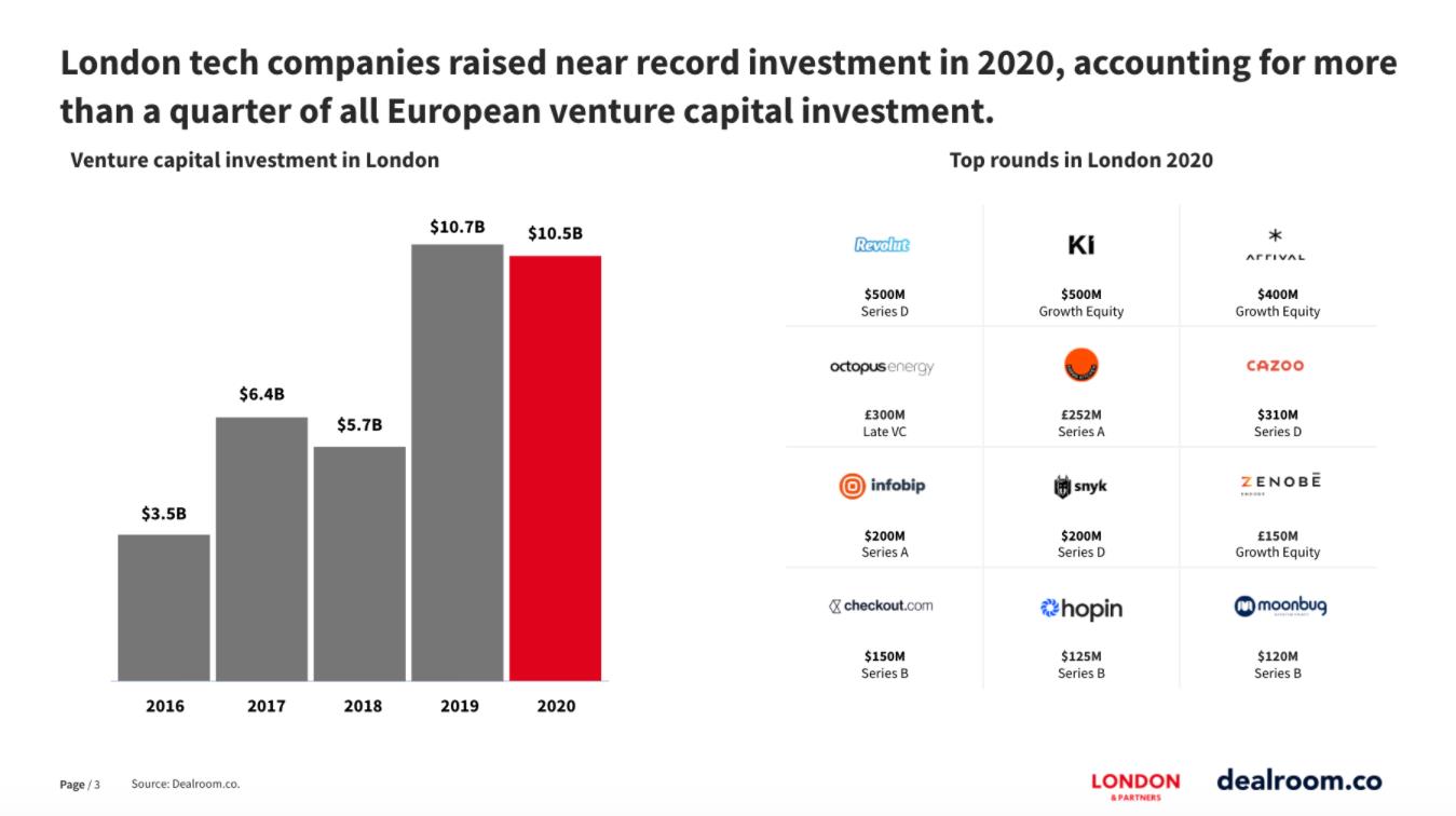 根据Dealroom.co与London & Partners的最新共同报告显示,伦敦目前是世界上最重要的科技中心之一,伦敦科技公司在2020年获得的风险投资再创新高!