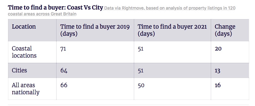 - 随着城市人口到海滨购房的需求翻倍,沿海房屋的销售比疫情前快了20天。Rightmove表示:购房者的偏好出现了比最初想象的更持久的转变。