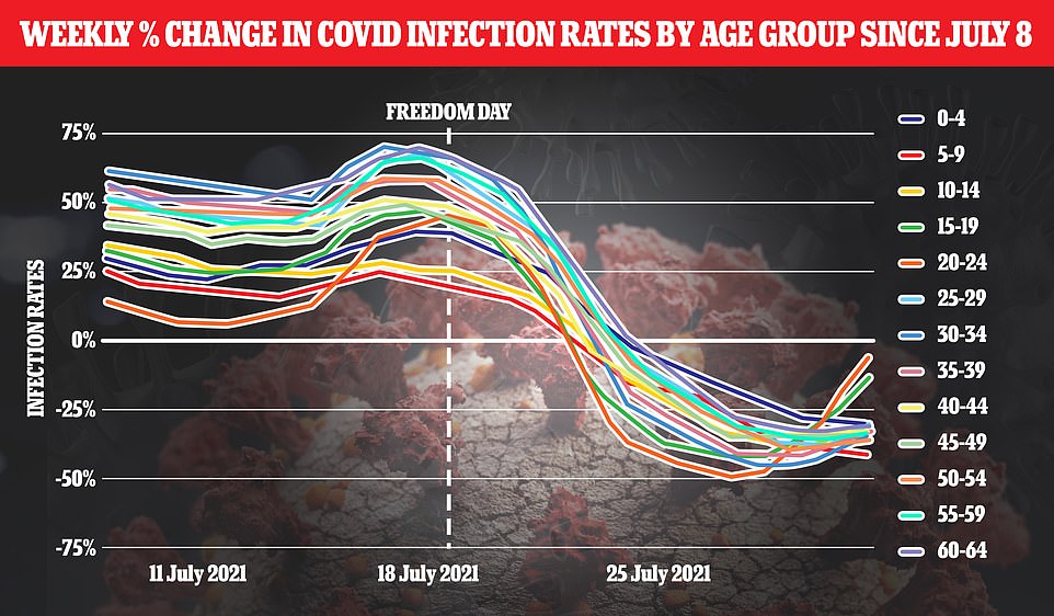 与此同时,15至24岁人群的病例一个月来首次上升。专家指出,这主要与7月19日解封和夜店重新开放、这个年龄段疫苗接种率较低等因素有关。