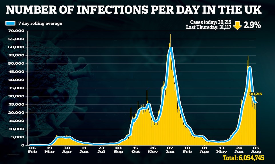 另一项来自英格兰公共卫生部门的数据显示:在截至8月1日的一周内,英格兰149个地方政府中,除12个地方政府外,其他地方的感染率都有所下降。
