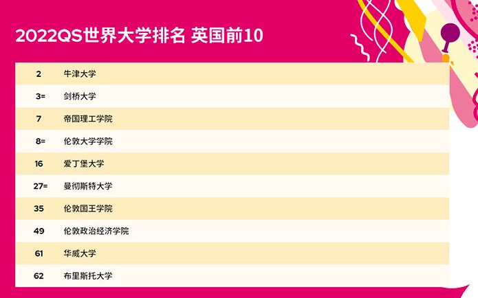 不仅如此,在全球排名前10的4所英国学校中,伦敦占到了2所,而伦敦国王学院和伦敦政经学院也进入了前50。