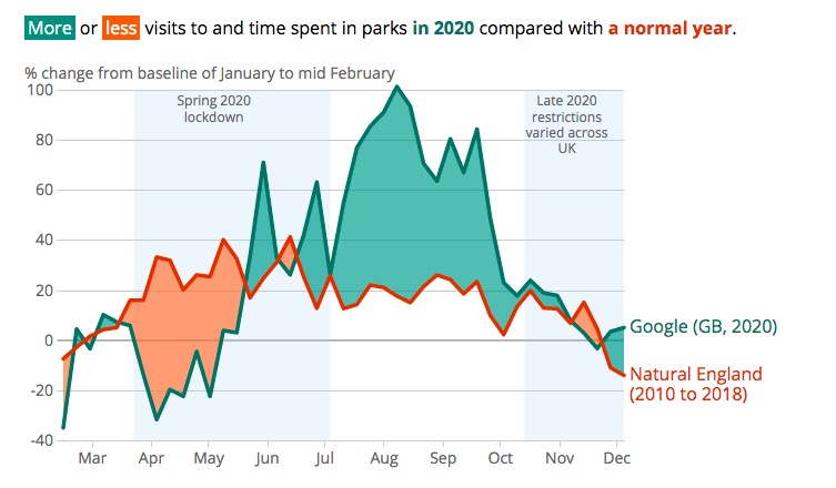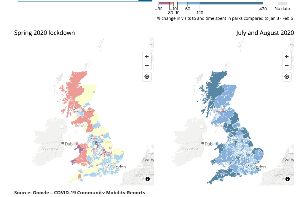 2020年夏天,公园和绿地的使用率比往年有所增加。