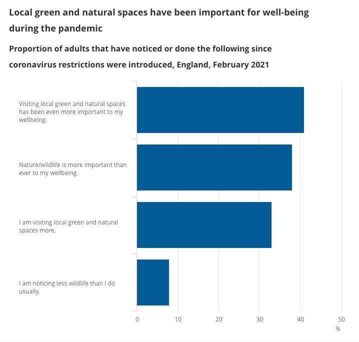 Natural England进行的调查显示:约90%的人认为自然空间有利于心理健康和提升幸福感。