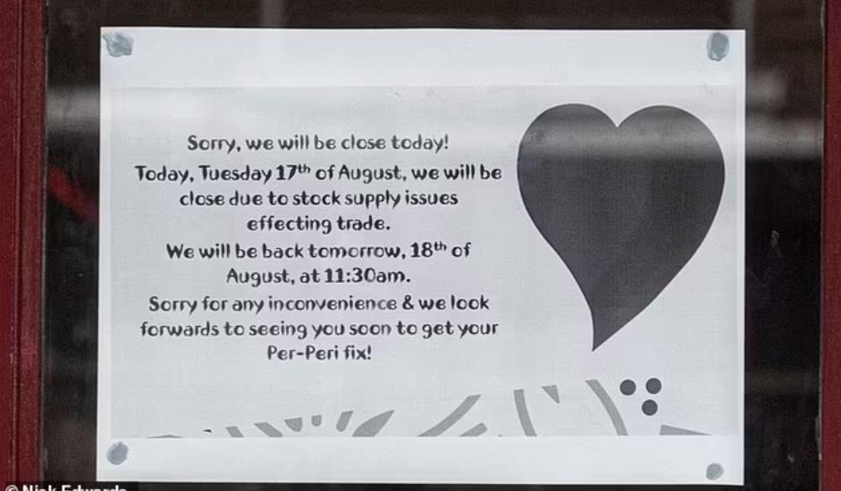 据媒体报道,由于原料供应短缺,连锁餐饮Nando\’s已被迫关闭近50家餐厅,并缩短了部分门店的营业时间,其外卖业务也受到了一定的影响。