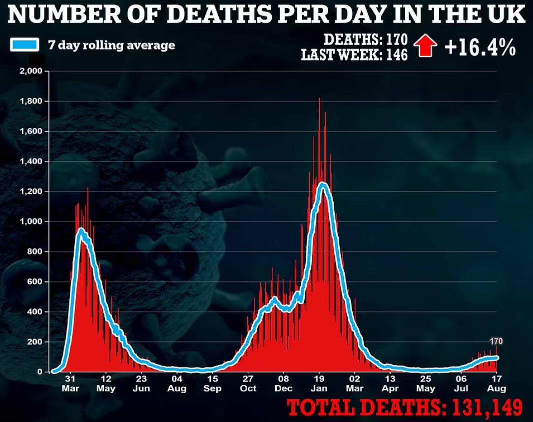 新增死亡病例170人,较上周同期增加16.4%,这也是近五个月以来的最高值。
