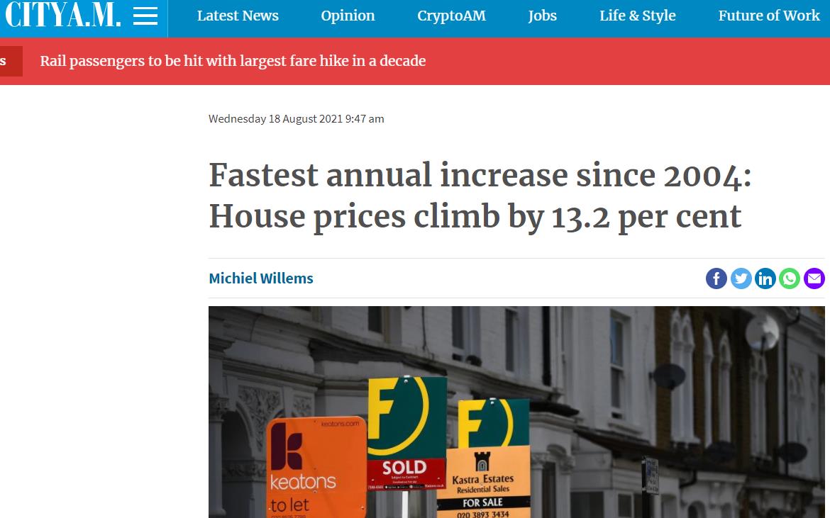 6月份英国平均房价同比上涨13.2%,为2004年以来的最高涨幅…