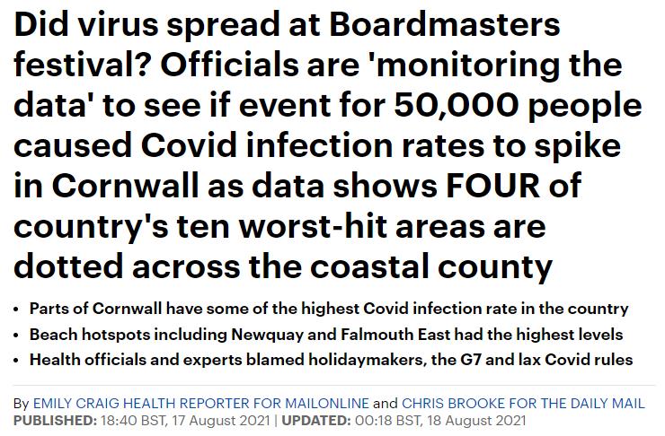 实际上,早在音乐节开始之前,康沃尔的部分地区的感染率已经位居全英前列。