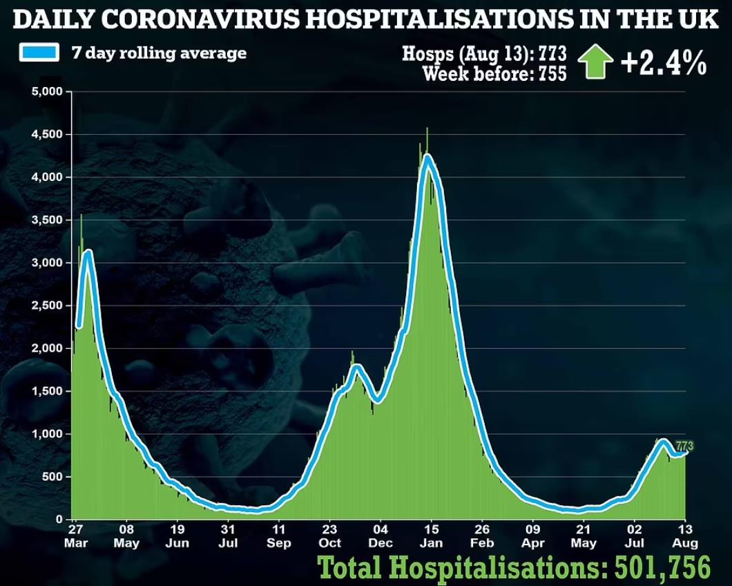 不过,目前的住院人数仅有小幅上升,最新记录显示,有773人因新冠住院。