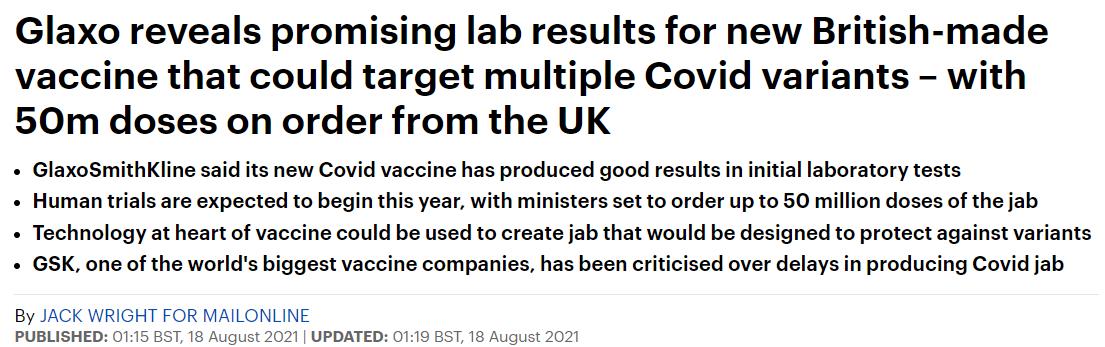 目前,英国已订购了多达5,000万剂葛兰素史克疫苗。